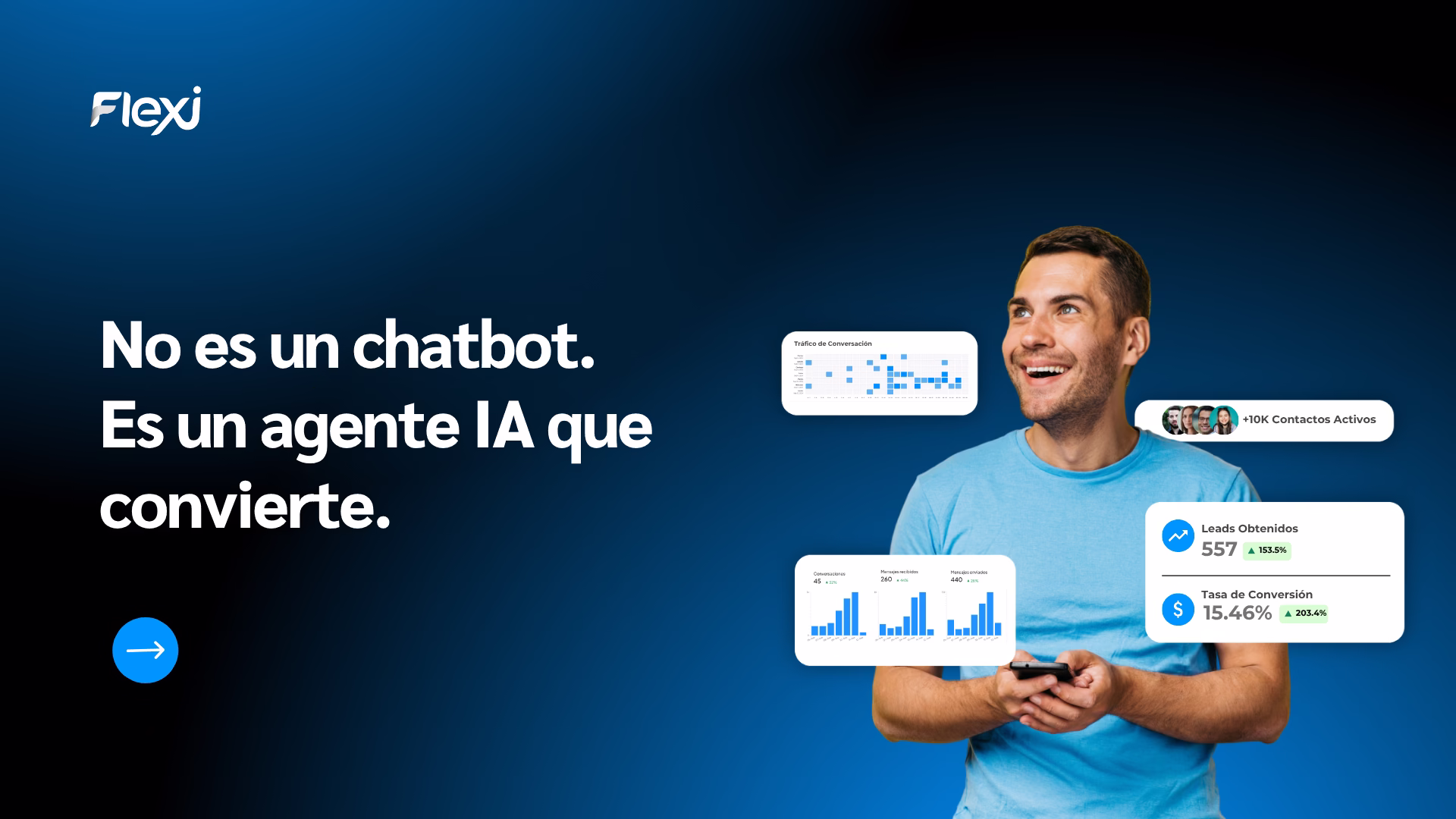 Aquí es donde entra Flexi. Un asistente conversacional por sí solo puede ayudarte, pero un asistente conectado a un CRM diseñado para gestionar leads por WhatsApp cambia el juego: